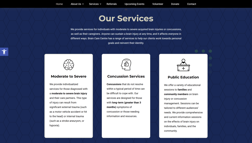 MindWell Centre is a non‑profit organization supporting adults who have experienced brain injuries, along with their caregivers, across several regions. Their old website was outdated, lacked accessibility features, and did not effectively reflect the brand identity they were striving for.